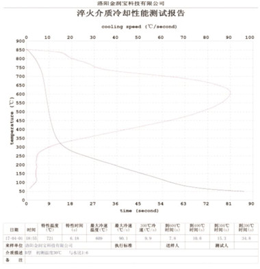 本產(chǎn)品無色或淡黃色透明液體,PH值為7。原液與水配比1:4~1:20之間。當(dāng)原液與水配比為1:4~1:9之間時(shí),可完替代慢速淬火油、中速淬火油和高速淬火油。原液與水配比為1:4~1:5時(shí),與慢速淬火油的冷卻性接近;原液與水配比為1:6時(shí)的水溶液的冷卻性與光亮中速淬火油的性接近;原液與水配比為1:8——1:9時(shí)的冷卻性與高速淬火油的性接近。